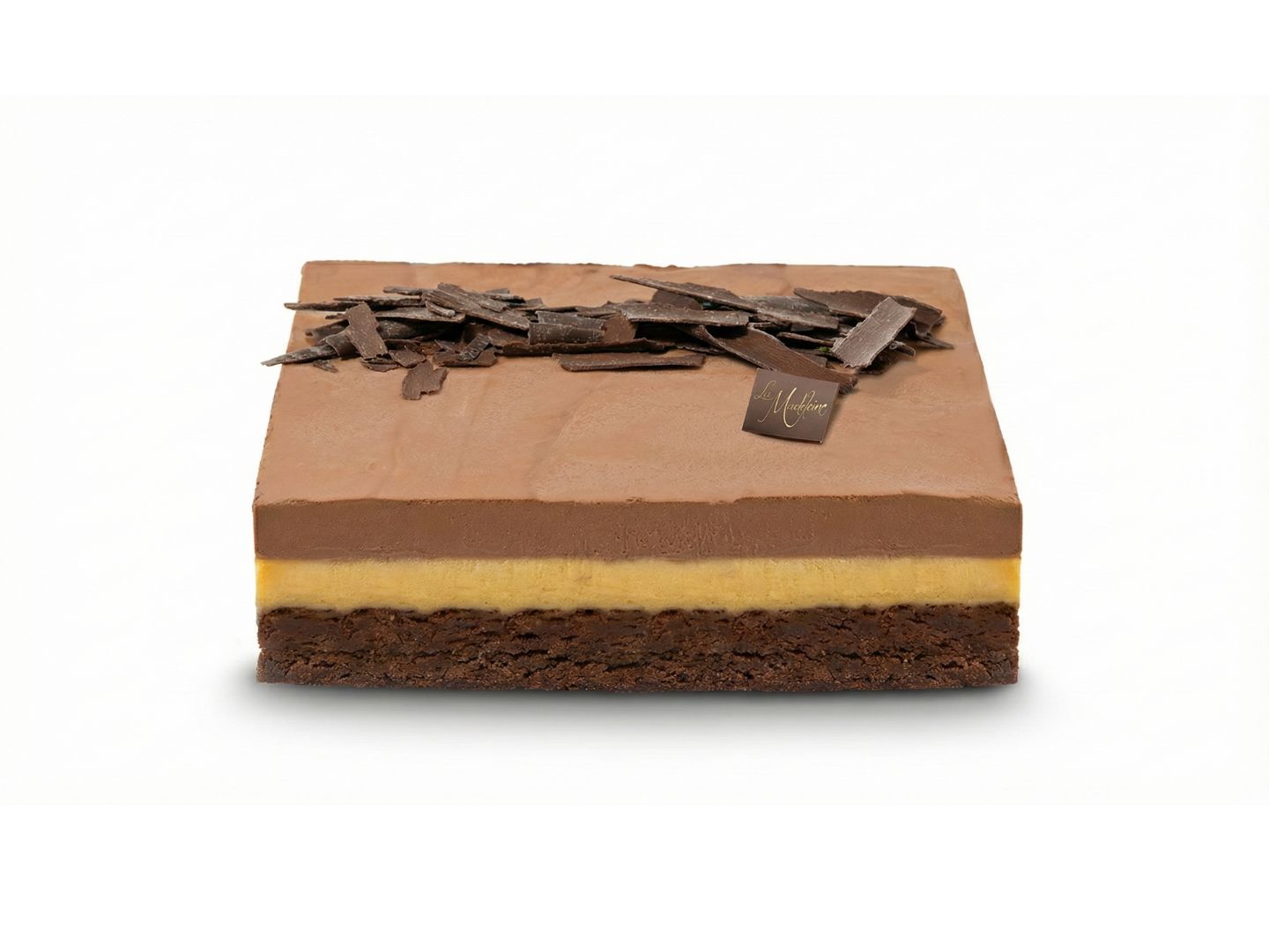 Dark Chocolate Mousse, Passion / Mango Custard, Dark Chocolate Brownie
